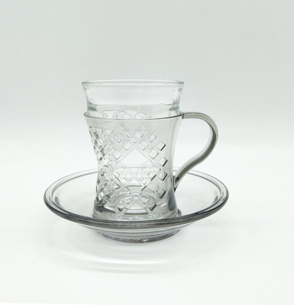 بيالة شاي مارية رصاصي شفاف 6+6 بيالة وصحن