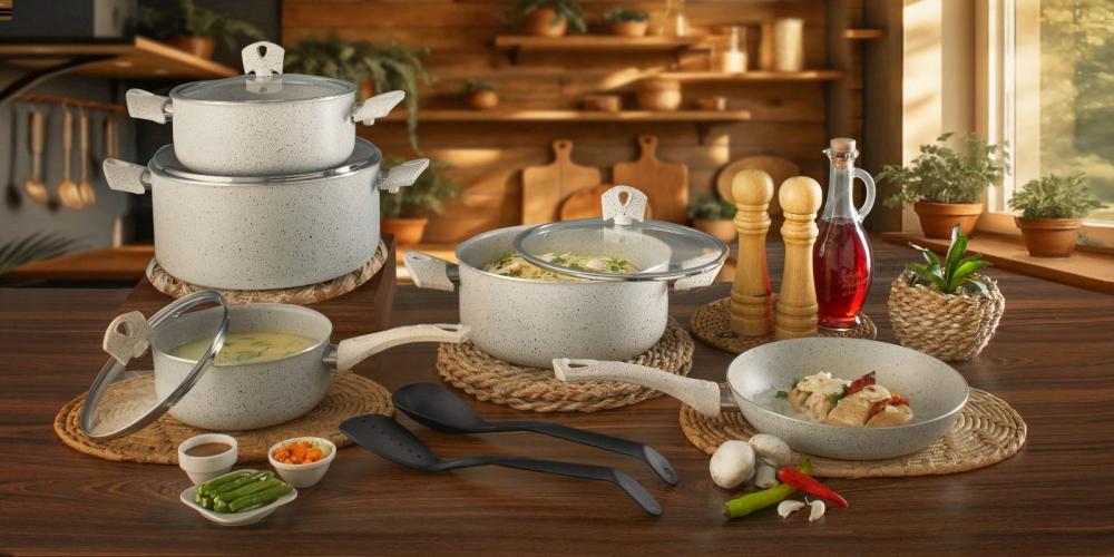Saif Plus Granite Cookware Set – 11 Pieces (20cm Pot + 24cm Pot + 24cm Pan) Enjoy a convenient and safe cooking experience with the premium granite cookware set from Saif Plus 🍳